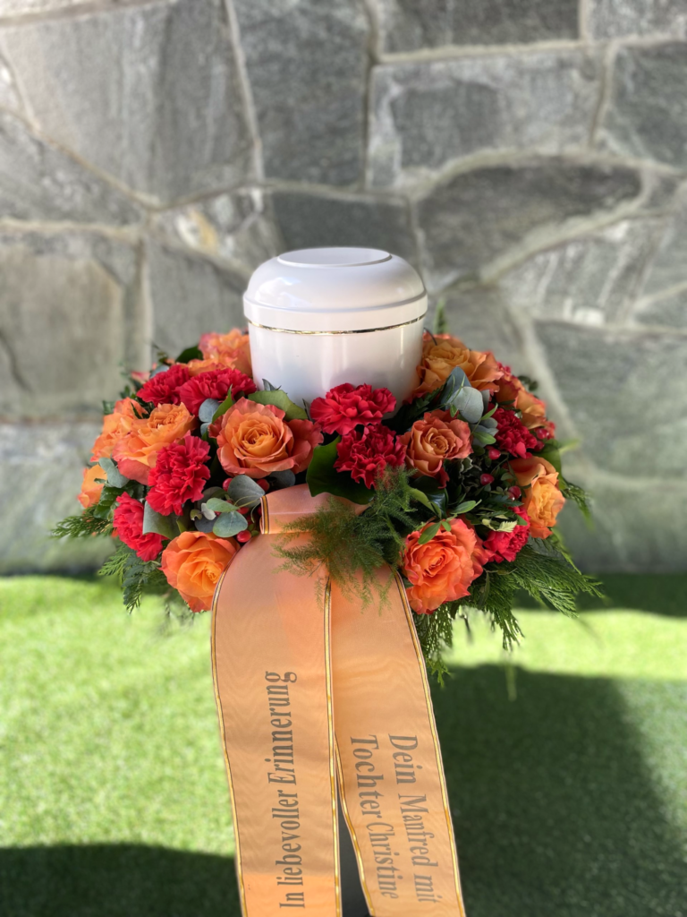 Alle Werkstücke entstehen mit handwerklicher Sorgfalt, einem sicheren Gespür für Form und Farbe sowie der Erfahrung unseres Floristenteams. Ob als Zeichen der Anteilnahme, der Wertschätzung oder einfach als liebevolle Aufmerksamkeit: Jede Bestellung wird individuell gefertigt und zuverlässig ausgeführt.